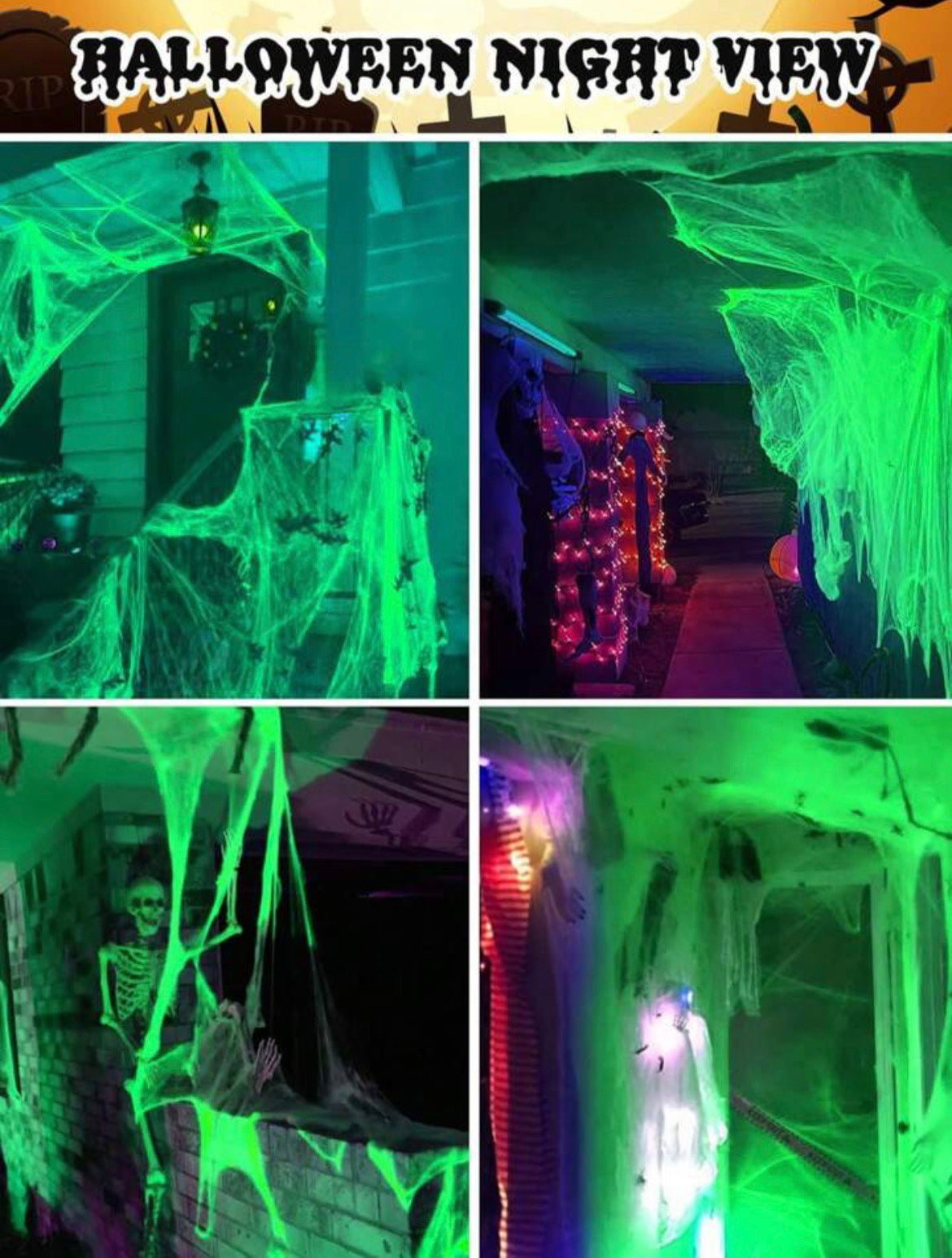Celebrate this Halloween with our high quality fiber, easy to stretch , durable and realistic glow in the dark spider webs.